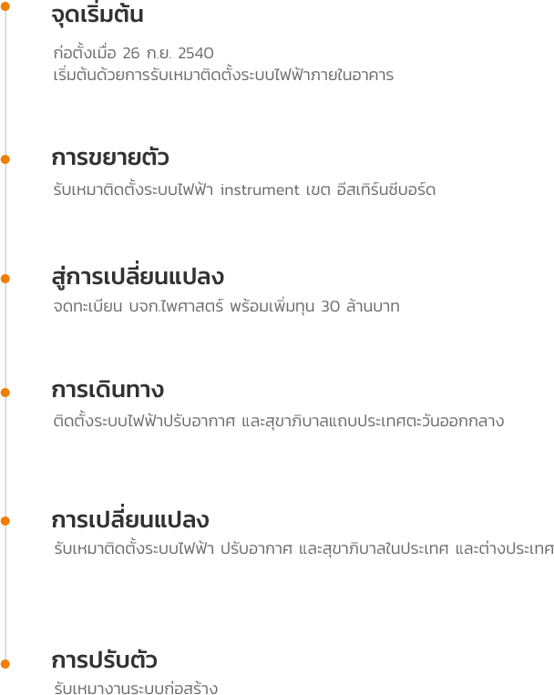 เป็นบริษัทที่มีประสบการณ์และบุคลากรที่มีความเชี่ยวชาญในงานติดตั้งงานระบบประกอบอาคาร โดยมีข้อมูลที่เชื่อมโยงกันทั้งระบเพื่อให้เกิดการประสานงานกันอย่างมีประสิทธิภาพ